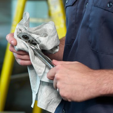 El paño de limpieza industrial Tork es una alternativa perfecta a los trapos o los paños de alquiler. Su suavidad y flexibilidad permite limpiar espacios reducidos y componentes delicados sin arañar la superficie, lo cual no le impide acabar con las manchas de aceite, grasa y suciedad, además de poder usarse con la mayoría de disolventes. Este paño puede utilizarse con los dispensadores de soporte de suelo o pared de Tork, diseñados para ofrecer seguridad, eficacia y fiabilidad, con el dispensador de alimentación central Tork Maxi o con el dispensador en caja Rollo Combi, diseñado para proporcionar una dispensación con una sola mano.