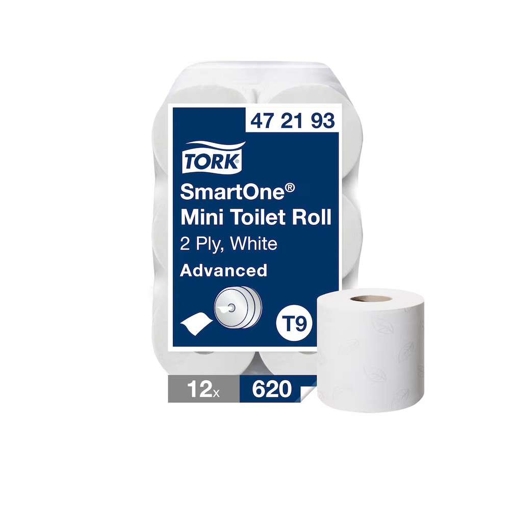 El sistema de dispensación Tork SmartOne Mini de papel higiénico ofrece una hoja limpia cada vez y ayuda a reducir el consumo hasta en un 40% en comparación con los dispensadores tradicionales de rollos industriales, aumentando así el número de usos por rollo.