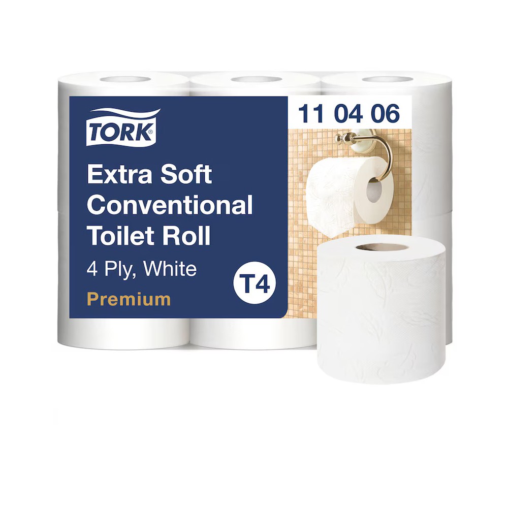 Haz que tus clientes se sientan como en casa con el papel higiénico convencional Premium de Tork. Este papel higiénico extrasuave ofrece un aspecto y tacto de lujo, junto con un rendimiento superior, para los elegantes aseos de hoteles y edificios de oficinas.