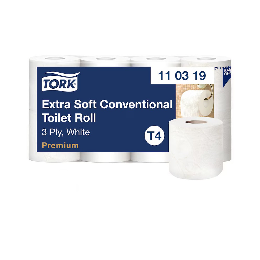 Tork Papel Higiénico Convencional Extrasuave Premium Blanco, 3 capas, 56 x 155 servicios, 110319